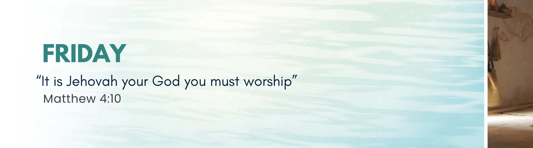 • Worship Only Jehovah (Matthew 4:10; Luke 4:5-7)