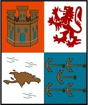 A flag proposal of the Unión of Hispaniola. From top left to lower right, hexagram castle of the Caribbean Empire, A panther, the island of Hispaniola and 5 anchors.
