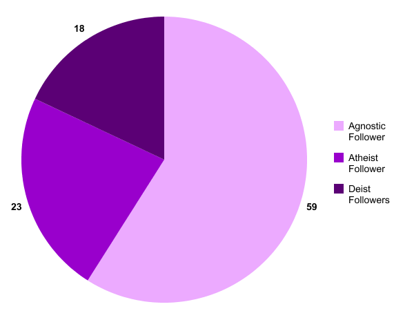 These two theological beliefs were on the rise for centuries, and during the 2020s their numbers grew even more. However, as many Chinese began practicing Buddhism again, this resulted in a drop in their population. The numbers of Agnostics and Atheists, as a percentage, reached a peak of 38% total in 2060, but many became Unitarian Universalists. during the subsequent decades.