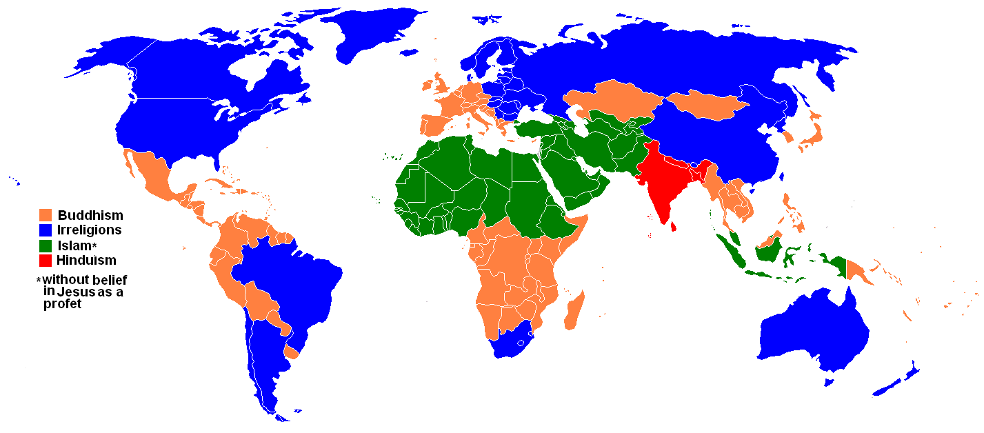 These are the predominant religions in 2050. Notice the complete lack of Christianity in this brave (and liberal) new world.