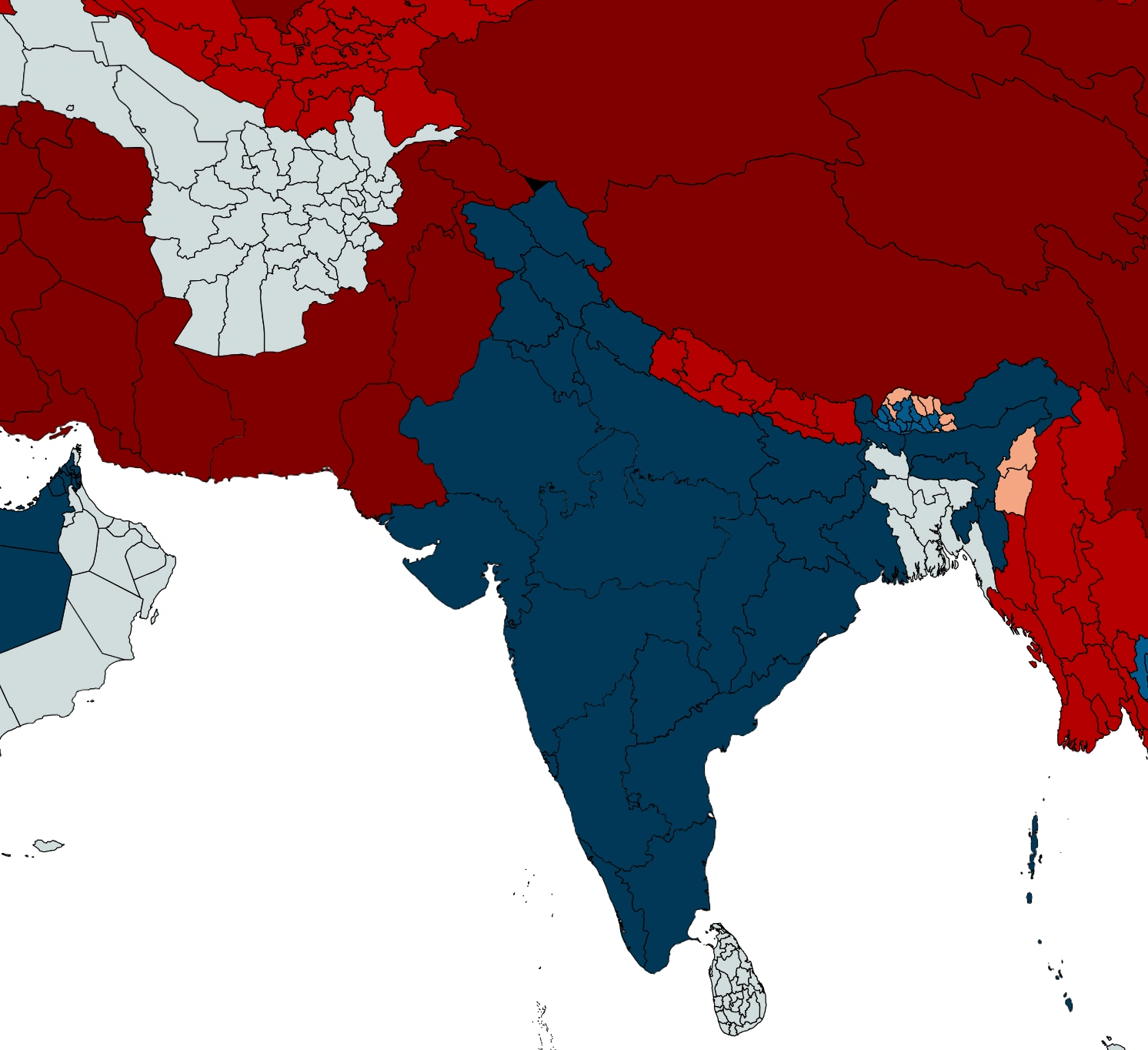 Although skirmishes were limited in the East Sea, there were occasional naval clashes between Russia and Japan but like in the Baltic Sea, Russia mined the waters around their coastline and would attempt air raids from Vladivostok targeting Hokkaido to prevent any invasion into Kamchatka. Fearing that the Kuril Islands could be targeted by Japanese and US raids, Russia mined the Kuril waters and built fortifications on the Kuril Islands and in Kamchatka. The Russian Navy knew that it wouldn't last long in naval combat against the Japanese and US and resorted to using baiting tactics for their submarines to attack US ships. China and India remained in a deadlock for the war as the Himalayan Mountains were now proving to be detrimental for both sides in the face of combat. Chinese generals then decided to use flat land in Tibet to construct air fields to act as forward bases while also concocting plans to get other countries to fight India. But due to Chinese technological superiority, they managed to gain ground in India and would manage to get their armor and mechanized forces through the Himalayas as China utilized Indian prisoners, dissidents and according to allegations from the US and India, Tibetan and Uyghur prisoners to construct efficient roads to support Chinese convoys. Chinese and Burmese forces would eventually advance into the Arunchal Pradesh and Nagaland while gaining towns such as Tinsukia and Jorhat. Despite the victories in the east, they were pyrrhic victories as Indian forces resorted to using guerilla styled tactics to ambush and destroy Chinese forces. The resulting ambushes and piling casualties saw Chinese retaliation in the form of missile strikes that flattened the terrain to allow Chinese and Burmese forces to move safely. China would then begin demanding the remaining neutral countries to join China in turn for economic benefit. The immense pressure would eventually force the last two countries neutral with India to join the war would be Bangladesh and Sri Lanka. Bangladeshi forces would launch attacks towards West Bengal while Chinese and Sri Lankan forces began mobilizing despite wanting neutrality, Sri Lanka would be forced into declaring war on China. Bhutanese forces would evacuate into India and would regroup with Indian reinforcements, but because of Bangladesh's entry into the war, Indian forces were at risk of being cut into two as Chinese forces now in conquered Bhutan prepared to mass an invasion force into India, while Nepalese forces would also cross into India with Chinese support.